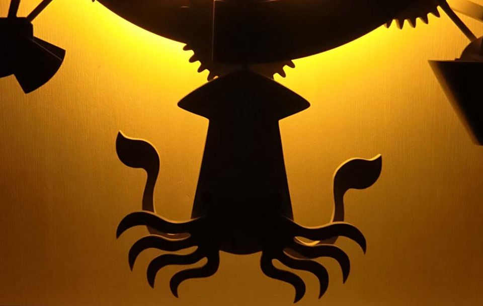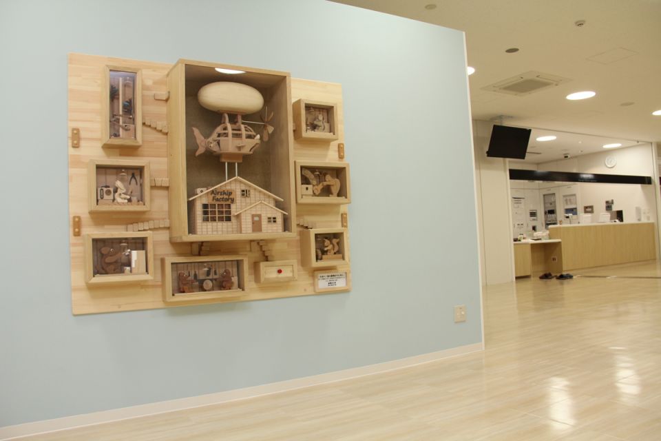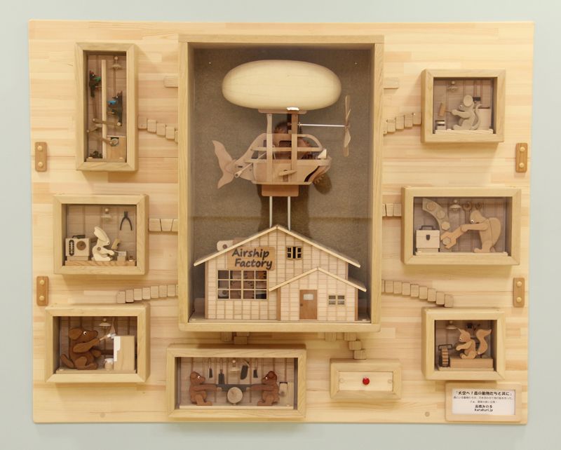 大空へ森の動物たちと共に : ボタンを押せば、LED照明が点灯し、飛行船、動物が動く。横須賀市救急医療センター 2014年
