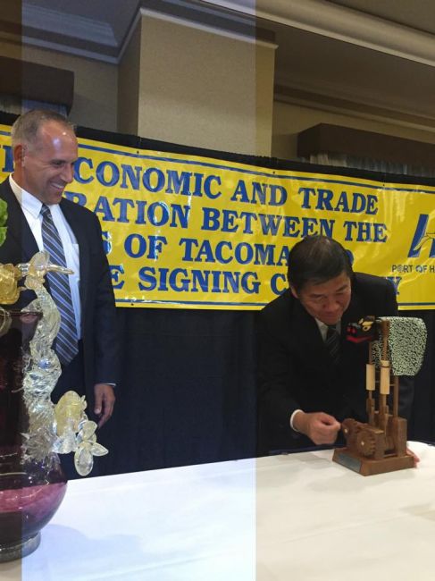 からくり獅子舞(手動) : 八戸港~米タコマ港 経済貿易協定調印式の両国交換記念品。八戸市主催。2015年